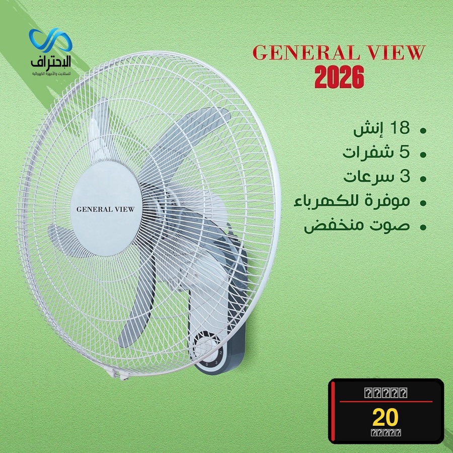 مروحة GENERAL VIEW الجدارية 18 إنش — موديل 2026