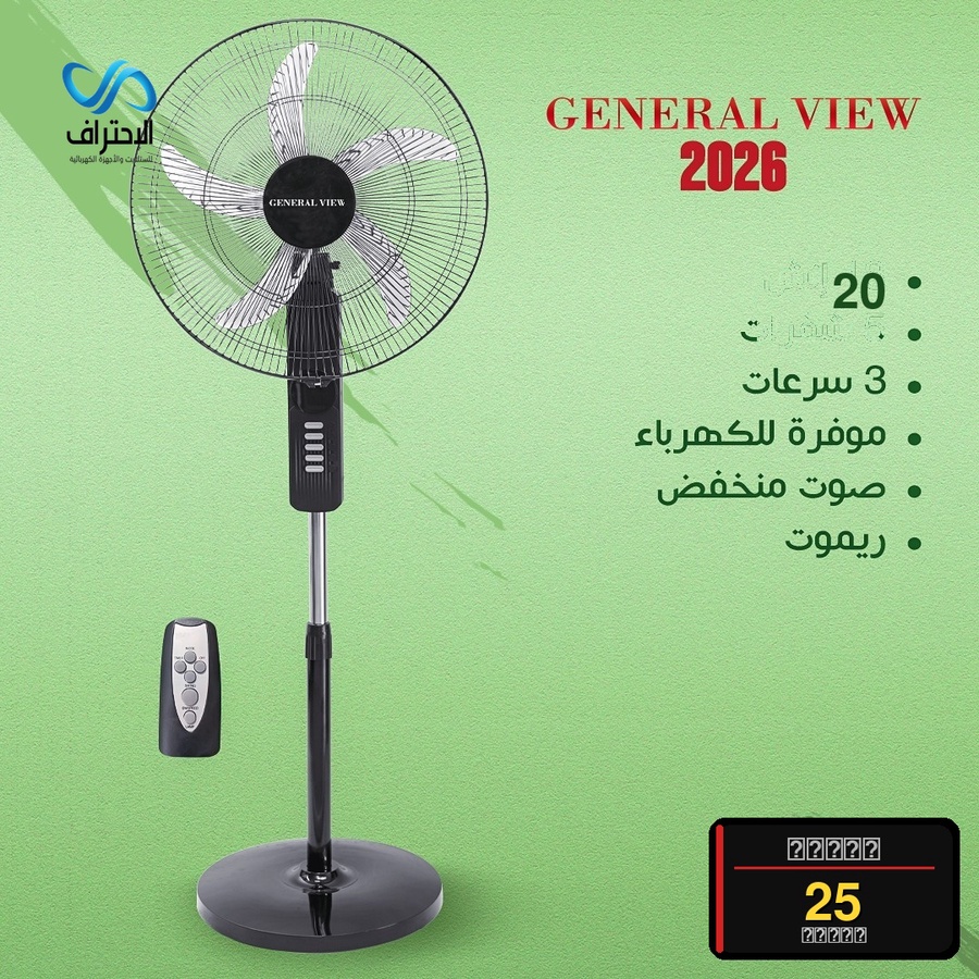 مروحة GENERAL VIEW ستاند 20 إنش مع ريموت — موديل 2026